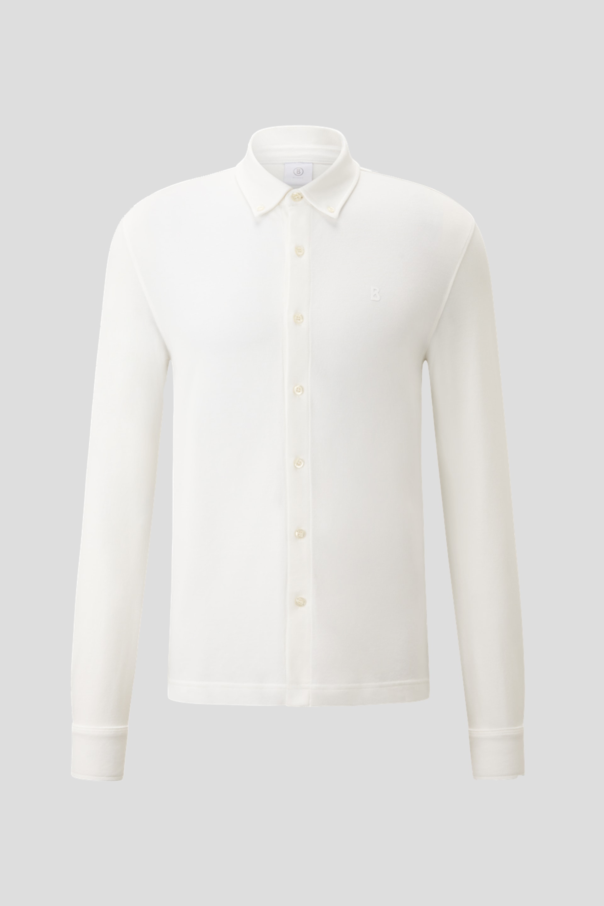 U polo stilu i izrađena od teksturiranog piqué materijala, muška košulja Franz sa dugim rukavima predstavlja elegantan i svestran izbor za različite prilike. Strukirana kragna na dugmad i manžetne sa dugmadima dodaju sofisticirane detalje, dok završnu notu daju dugmad sa utisnutim logotipom i prepoznatljiv “B” logotip na grudima.