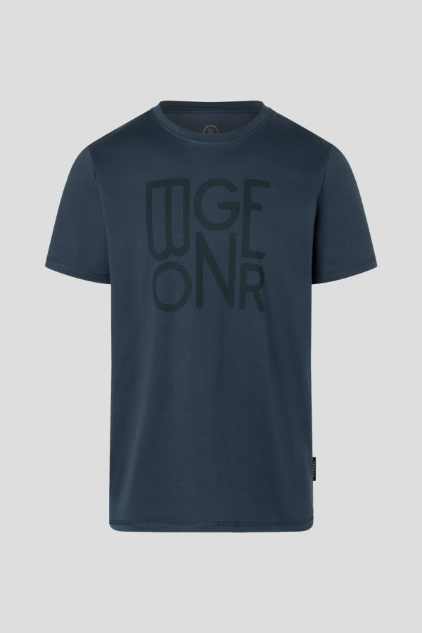 Single Jersey T-shirt sa okruglim izrezom i BOGNER printom na grudima, sa flatlock šavovima duž vrata, rukava i poruba, i flag labelom na bočnoj strani. Napravljeno od single jersey tkanine, ispirano pranje.
