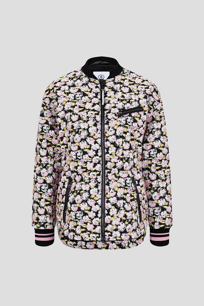 Moderan cvetni dizajn u ekskluzivnoj tehnici Fil-Coupé čini Anettu savršenim izborom za elegantan, a ipak sportski stil. Krojenje prilagođeno figuri sa rastegljivim delom u struku naglašava žensku siluetu, dok rebrasti stojeći ovratnik i prugasti rebrasti manžetni na rukavima dodaju dinamičan šarm. Veliki džepovi na rajsferšlus praktični su za odlaganje sitnica, a moderan izgled upotpunjuje obostrani rajsferšlus sa logom.