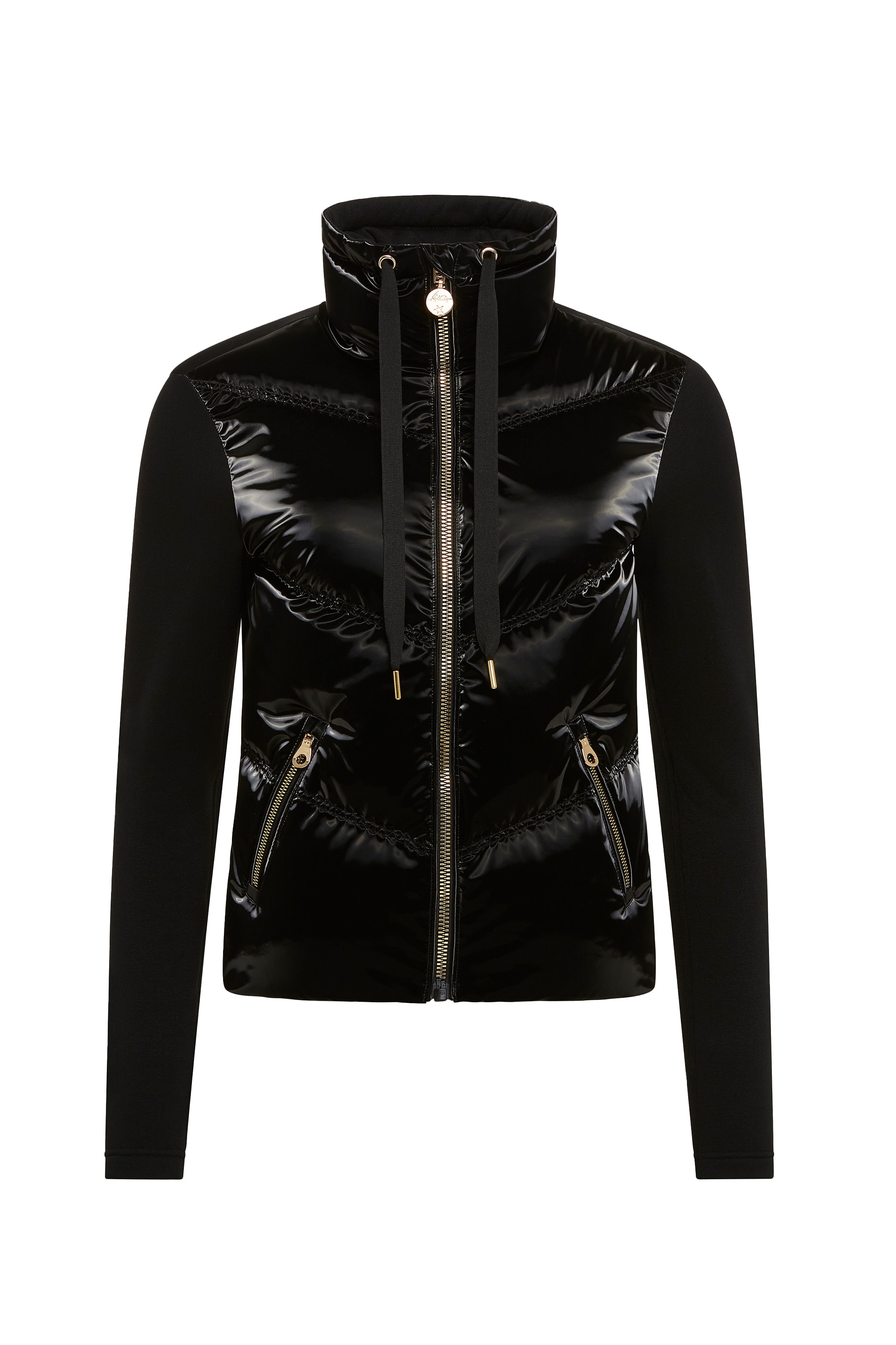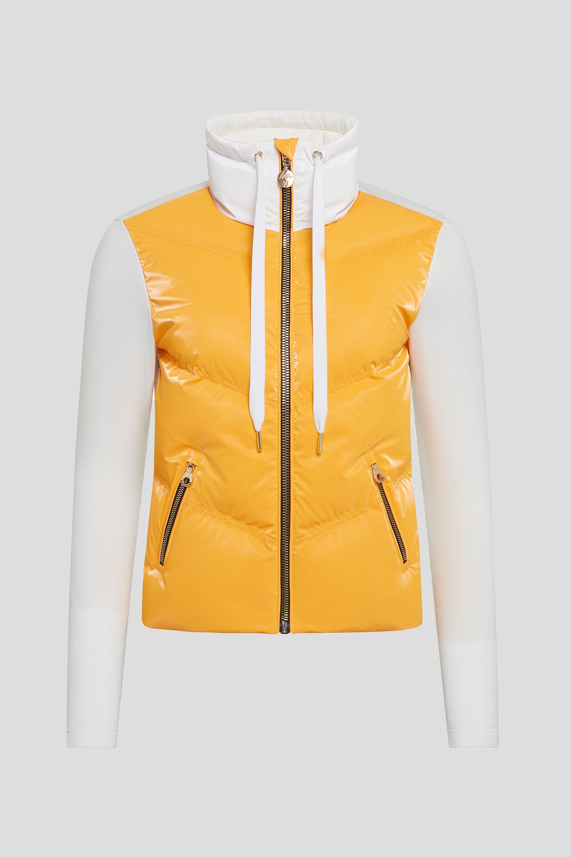 Ova hibridna ski jakna kombinuje puno guščije perje u prednjem delu sa mekanim pletenim rukavima i leđima, pružajući savršenu toplinu i udobnost tokom zime. Izrađena od baršunasto sjajnog materijala, može se nositi kao topli mid-layer ili kao stilizovani après-ski komad.