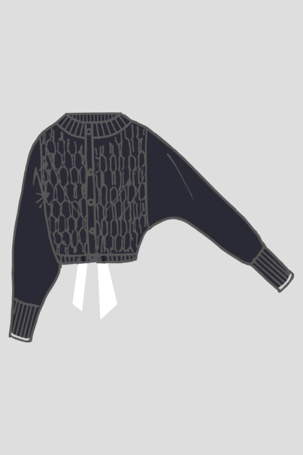 Pletena jakna Ricarda od mešavine kašmira i svile dobija svoju privlačnost zbog svoje luksuzne izvedbe. Blago spuštena ramena, fine kontrastne pruge na manžetnama rukava i dijamantski pleteni patern na prednjoj strani su vrhunci dizajna. Dugmad osigurava klasičnu završnu obradu.